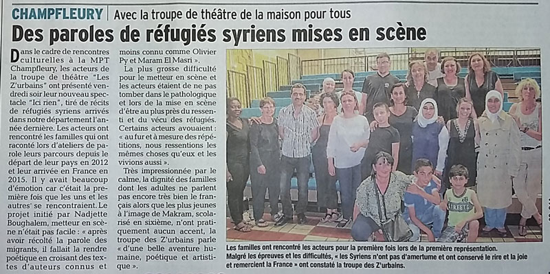 Ateliers d’écriture à la MPT Champfleury, spectacle « Ici rien » de la cie Les Z’urbains.